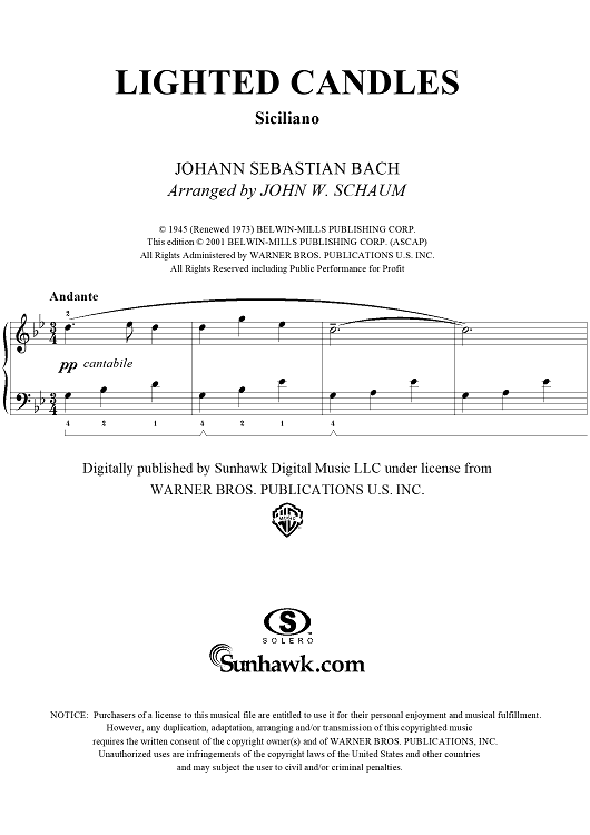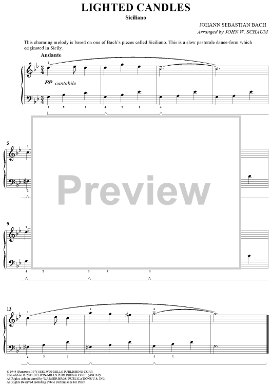Digital Sheet Music for Lighted Candles (Siciliano) by John W. Schaum, Johann Sebastian Bach scored for Piano Solo; id:293081