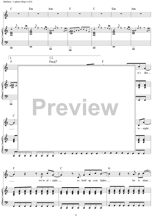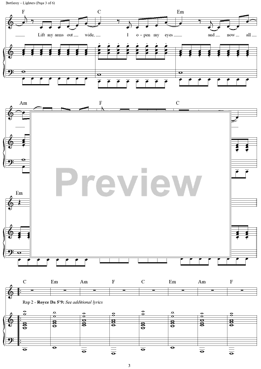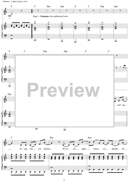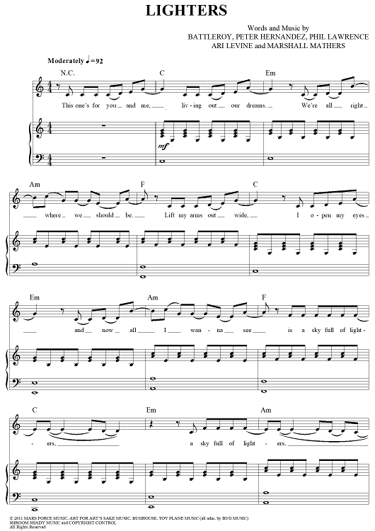 Digital Sheet Music for Lighters by Marshall Mathers, Peter Hernandez, Ari Levine, Philip Lawrence, Bruno Mars, Battleroy, Bad Meets Evil scored for Piano/Vocal/Chords; id:428770