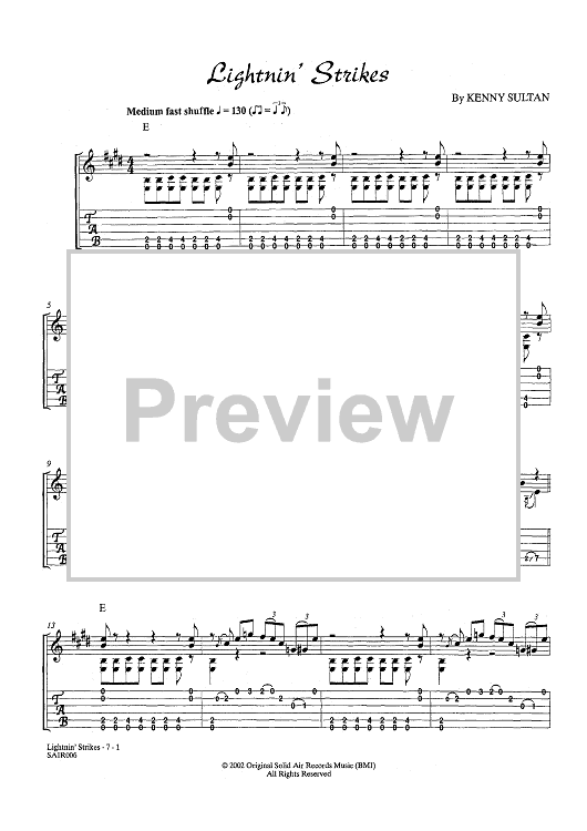 Digital Sheet Music for Lightnin' Strikes (No MP3) by Kenny Sultan scored for Guitar Tab; id:452123