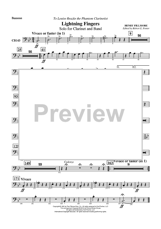 Digital Sheet Music for Lightning Fingers - Solo for Clarinet and Band - Bassoon by Henry Fillmore, Robert E. Foster scored for Concert Band; id:430462