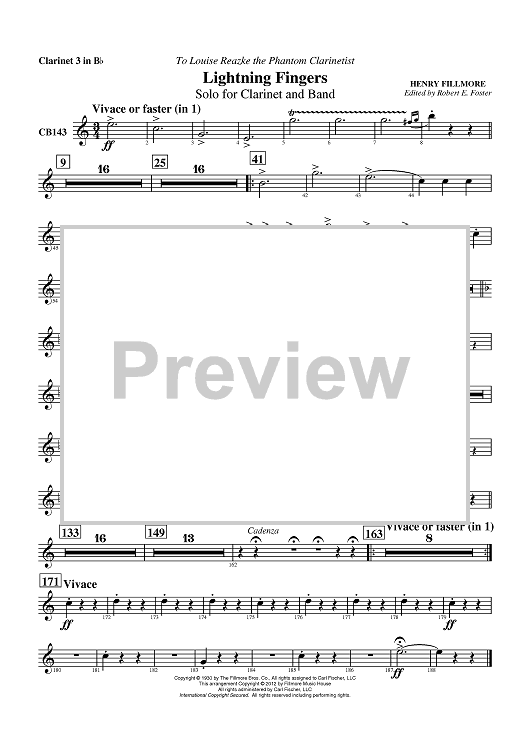 Digital Sheet Music for Lightning Fingers - Solo for Clarinet and Band - Clarinet 3 in Bb by Henry Fillmore, Robert E. Foster scored for Concert Band; id:430460