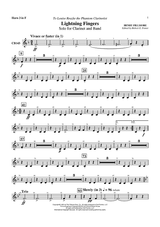 Digital Sheet Music for Lightning Fingers - Solo for Clarinet and Band - Horn 3 in F by Henry Fillmore, Robert E. Foster scored for Concert Band; id:430473