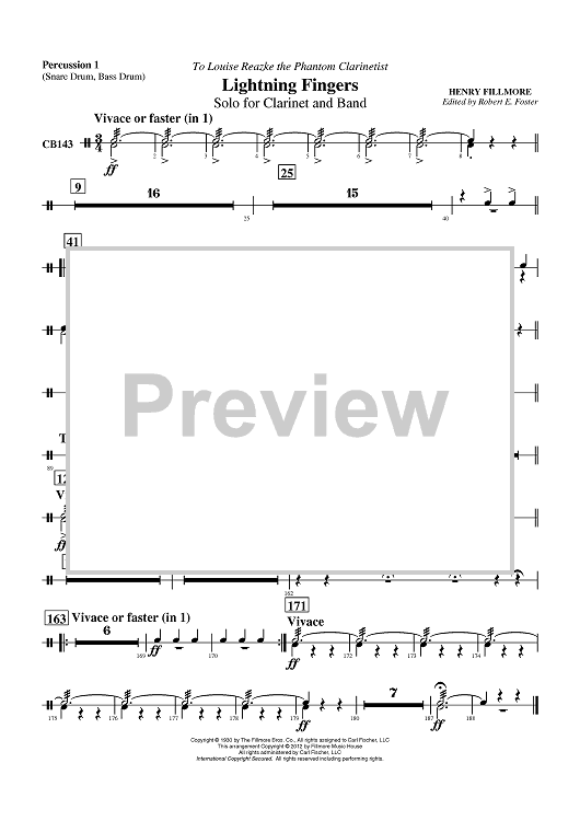 Digital Sheet Music for Lightning Fingers - Solo for Clarinet and Band - Percussion 1 by Henry Fillmore, Robert E. Foster scored for Concert Band; id:430482