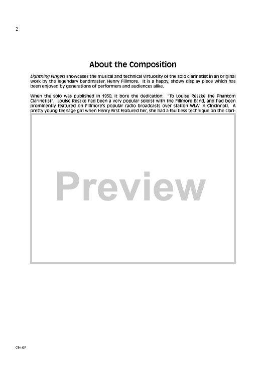 "Lightning Fingers - Solo for Clarinet and Band - Score" Sheet Music by Henry Fillmore