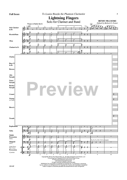 Digital Sheet Music for Lightning Fingers - Solo for Clarinet and Band - Score by Henry Fillmore, Robert E. Foster scored for Concert Band; id:430453