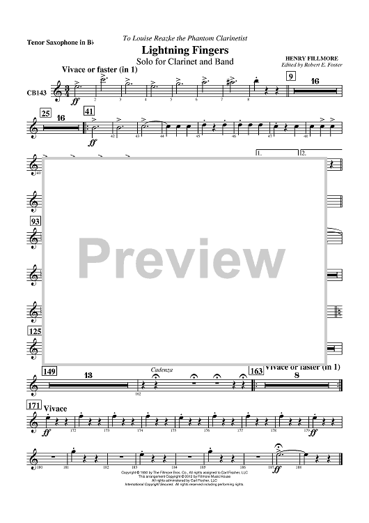 Digital Sheet Music for Lightning Fingers - Solo for Clarinet and Band - Tenor Sax by Henry Fillmore, Robert E. Foster scored for Concert Band; id:430465