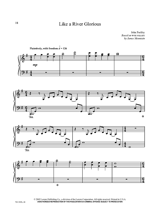 Digital Sheet Music for Like a River Glorious by John Purifoy, James Mountain scored for Piano Solo; id:433574