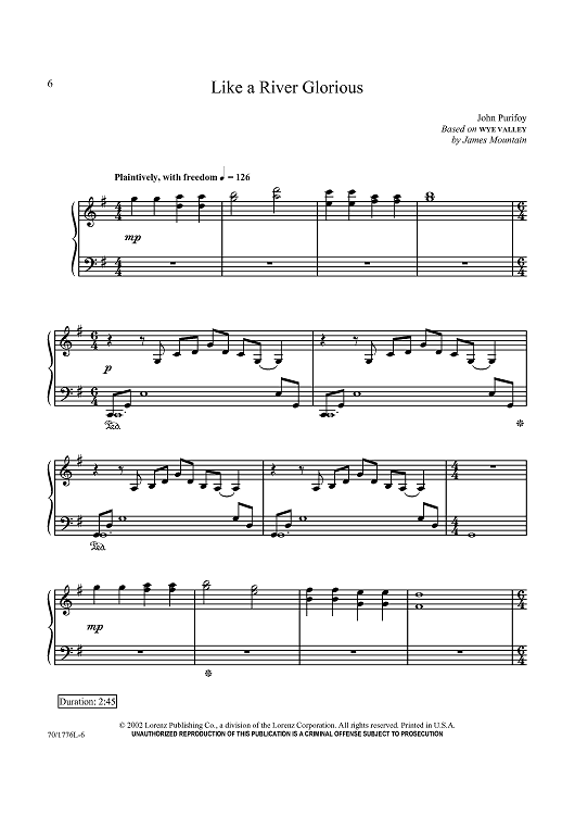 Digital Sheet Music for Like a River Glorious by John Purifoy, James Mountain scored for Piano Solo; id:433646