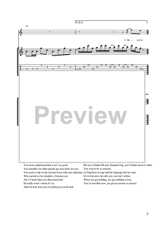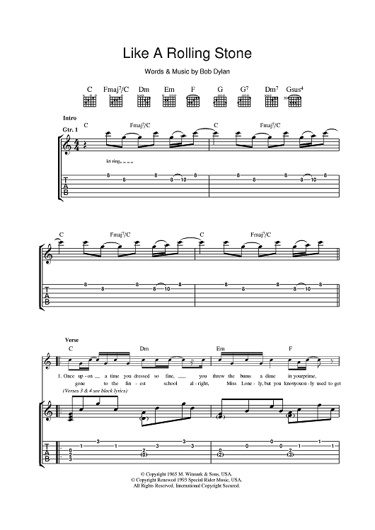 Digital Sheet Music for Like A Rolling Stone by Bob Dylan scored for Guitar Tab; id:401163