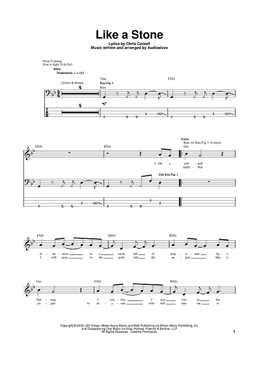 Digital Sheet Music for Like A Stone by Audioslave, Chris Cornell scored for Bass Tab; id:374365