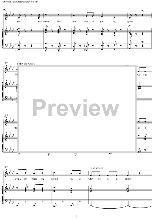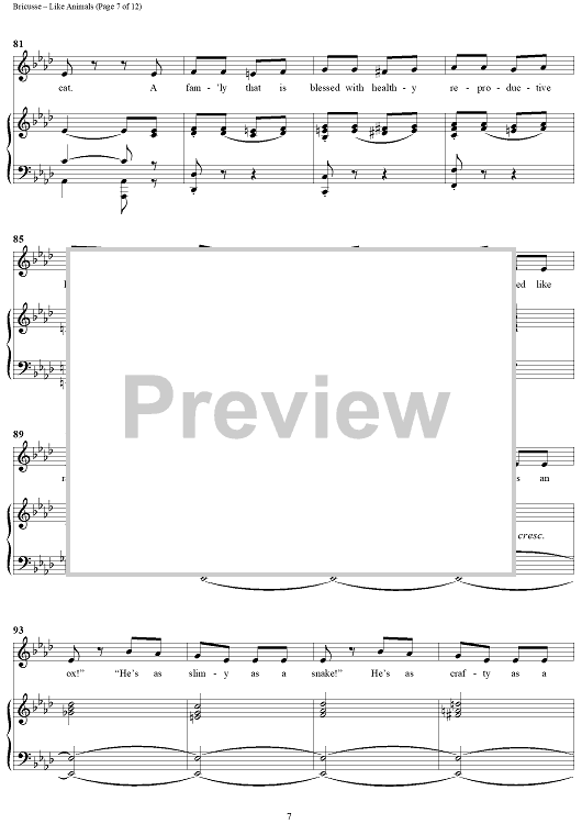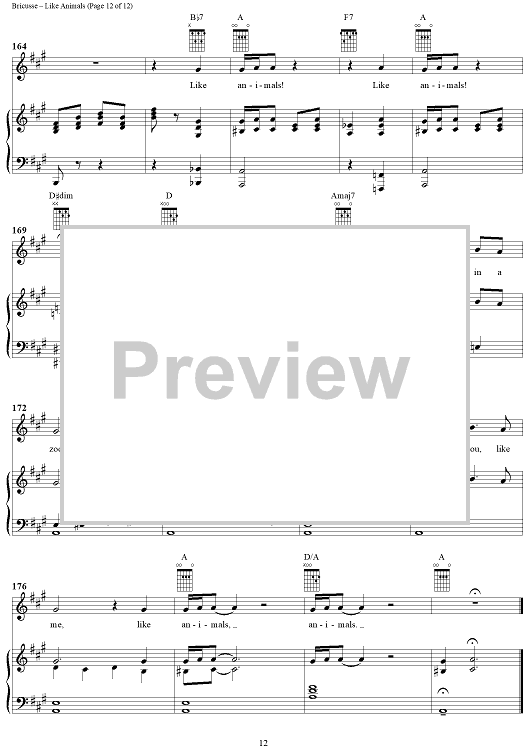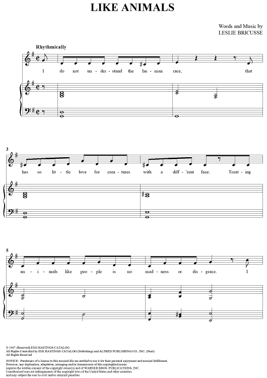 "Like Animals" Sheet Music by Leslie Bricusse