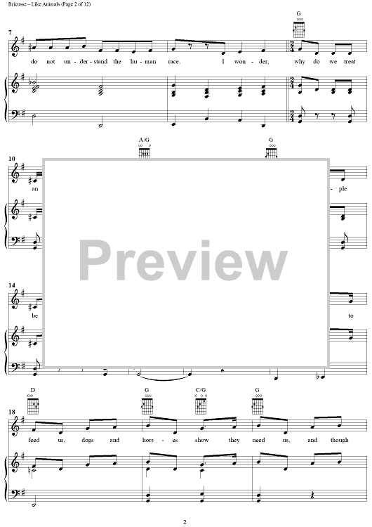 Digital Sheet Music for Like Animals by Leslie Bricusse scored for Piano/Vocal/Chords; id:362824