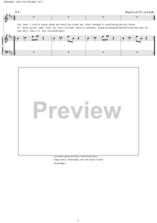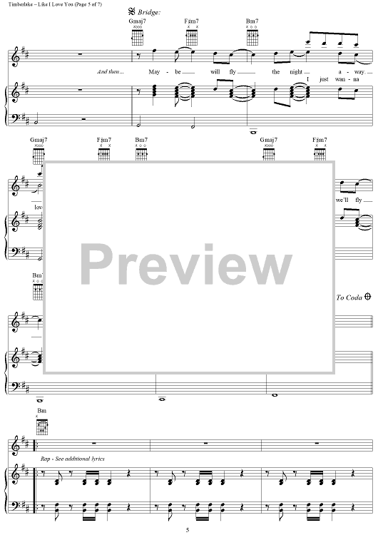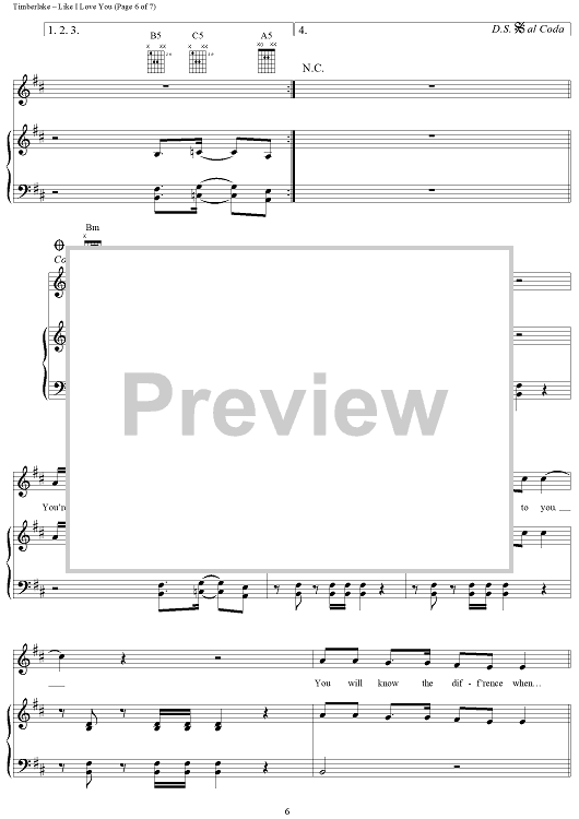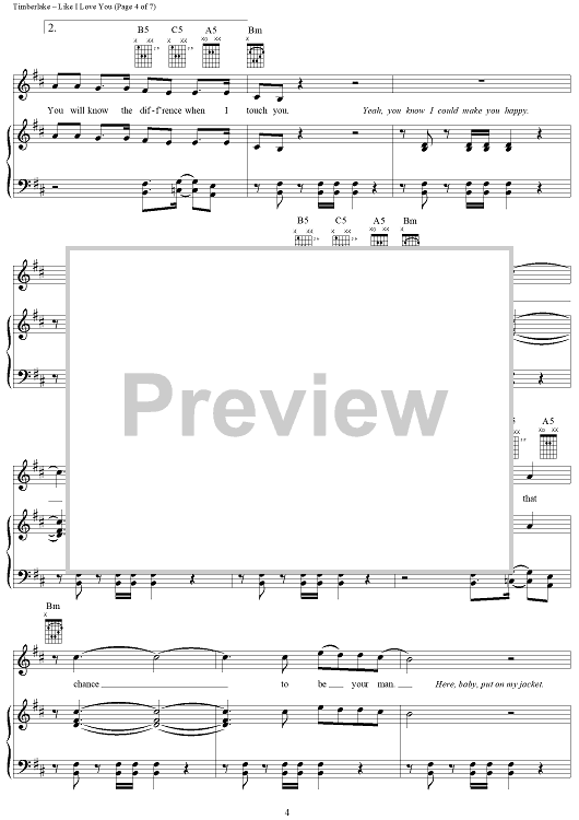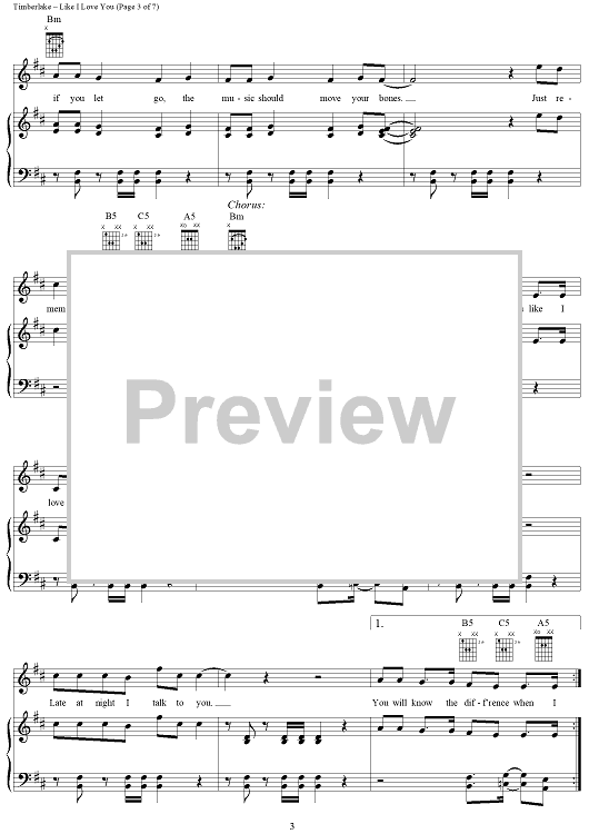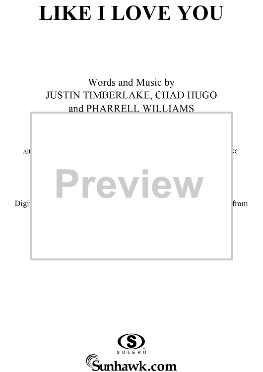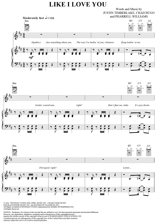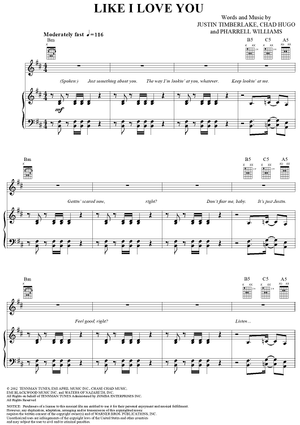 Digital Sheet Music for Like I Love You by Chad Hugo, Pharrell Williams, Justin Timberlake scored for Piano/Vocal/Chords; id:293351