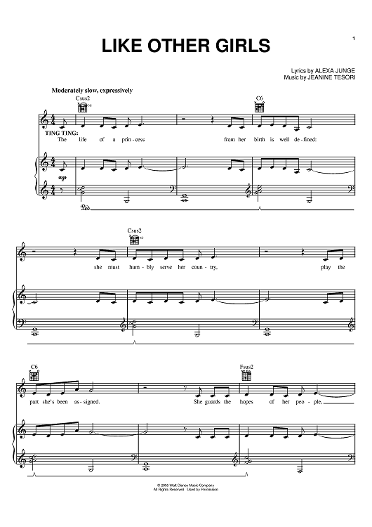 Digital Sheet Music for Like Other Girls by Jeanine Tesori, Alexa Junge scored for Piano/Vocal/Chords; id:383373