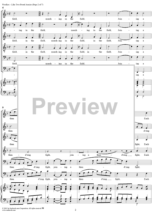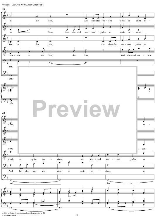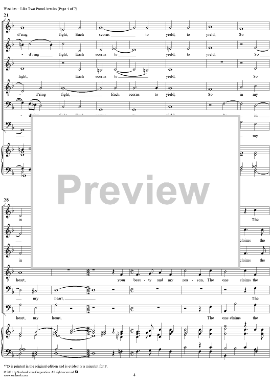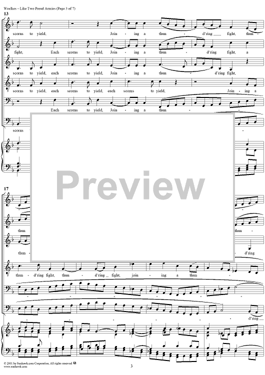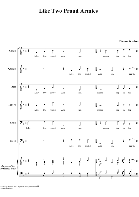 Digital Sheet Music for Like Two Proud Armies by Thomas Weelkes scored for Six-part Mixed Chorus; id:262500
