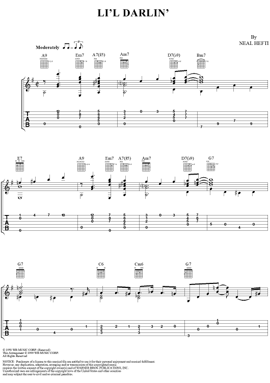 Digital Sheet Music for Li'l Darlin' by Count Basie, Jerry Silverman, Neal Hefti scored for Guitar Tab; id:120257