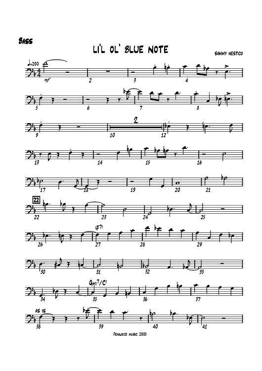 "Li'l Ol' Blue Note - Bass" Sheet Music by Sammy Nestico