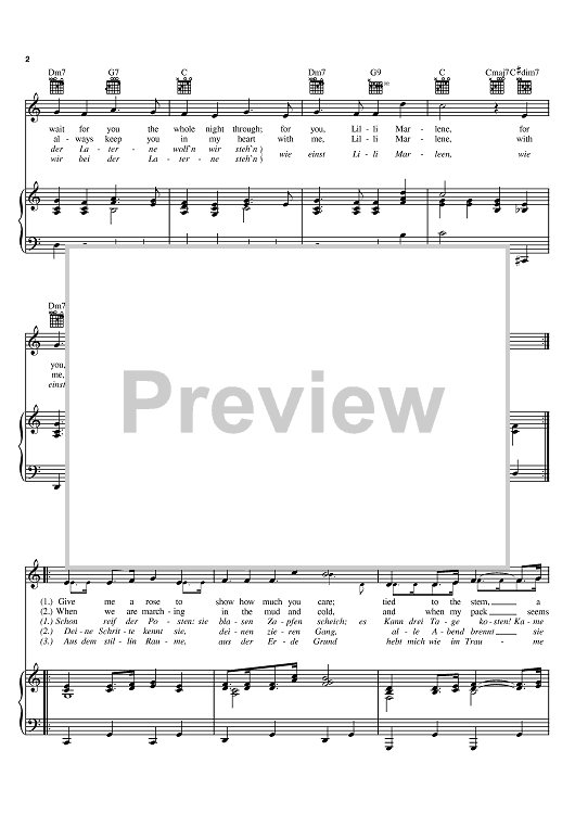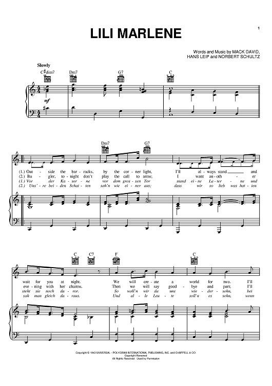 Digital Sheet Music for Lili Marlene by Mack David, Perry Como, Marlene Dietrich, Hans Leip, Norbert Schultz scored for Piano/Vocal/Chords; id:381489