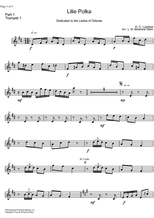 "Lilie Polka - Trumpet" Sheet Music by Hans Lumbye