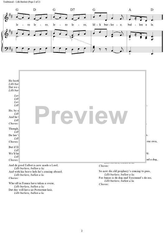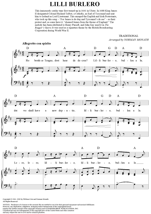 Digital Sheet Music for Lilli Burlero by Norman Monath, Traditional scored for Piano/Vocal/Chords; id:260173