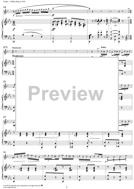 "Lillian (Polka Caprice) - Piano Score" Sheet Music by Herbert L. Clarke
