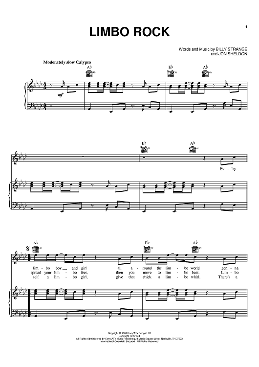 Digital Sheet Music for Limbo Rock by Chubby Checker, Jon Sheldon, Billy Strange scored for Piano/Vocal/Chords; id:383495