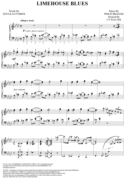 Digital Sheet Music for Limehouse Blues by Philip Braham, Douglas Furber, Cy Walter scored for Piano Solo; id:313624