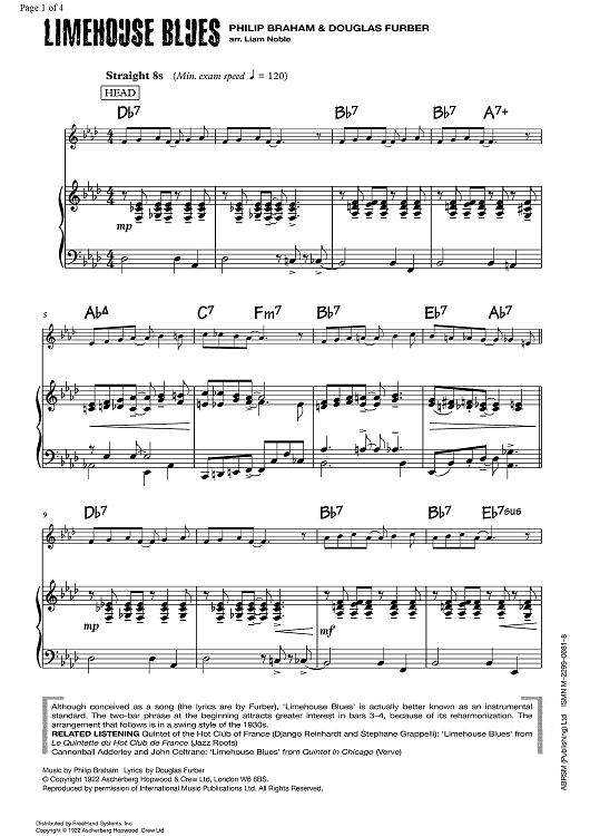 Digital Sheet Music for Limehouse Blues by , Philip Braham, Douglas Furber, Liam Noble scored for Trombone 5/Piano; id:355515