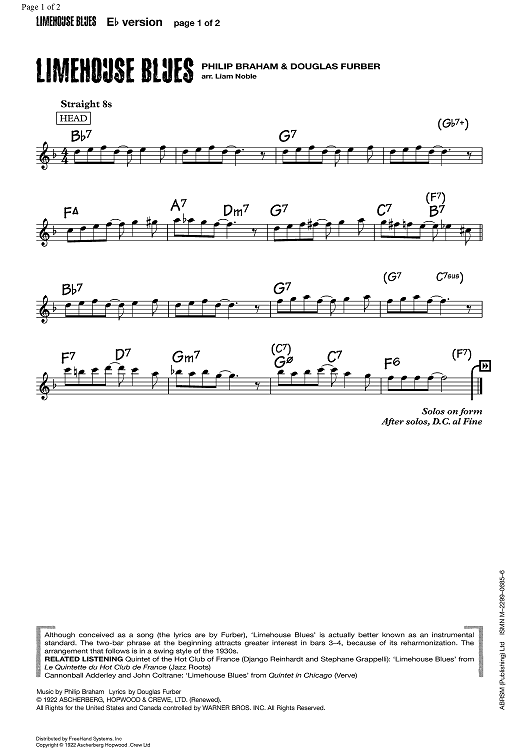 Digital Sheet Music for Limehouse Blues by , Philip Braham, Douglas Furber, Liam Noble scored for E-flat Lead Sheet; id:355561