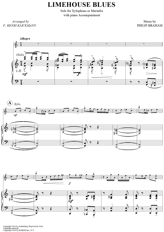 Digital Sheet Music for Limehouse Blues - Piano Score by , Philip Braham, F. Henri Klickmann scored for Xylophone/Piano; id:419214