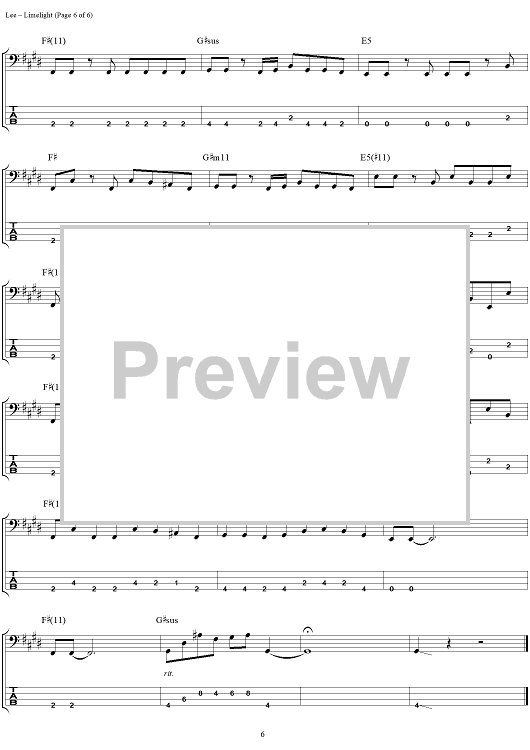 "Limelight" Sheet Music by Rush