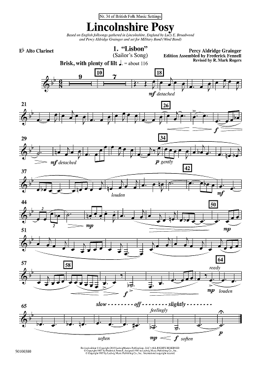 Digital Sheet Music for Lincolnshire Posy - 2020 Edition - Eb Alto Clarinet by Percy Grainger, Frederick Fennell scored for Concert Band; id:502623