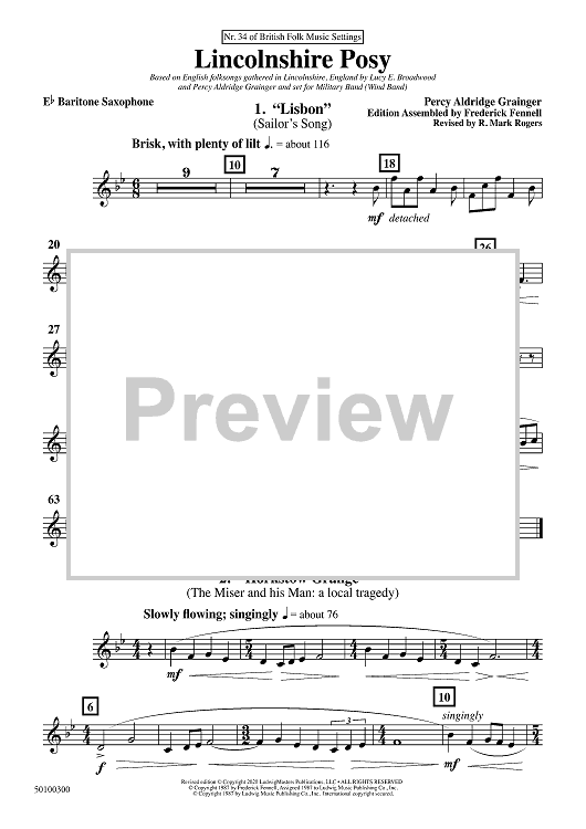 Digital Sheet Music for Lincolnshire Posy - 2020 Edition - Eb Baritone Sax by Percy Grainger, Frederick Fennell scored for Concert Band; id:502633