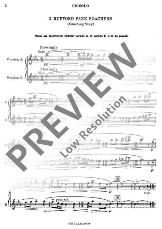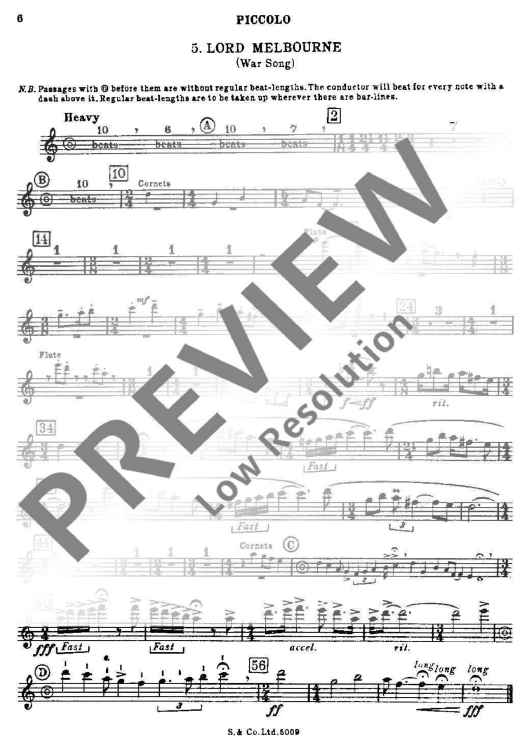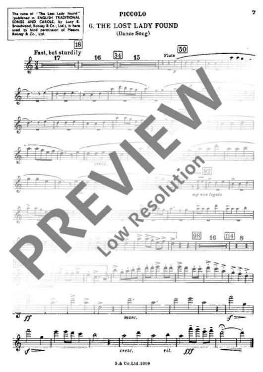 "Lincolnshire Posy - Piccolo" Sheet Music by George Percy Aldridge Grainger