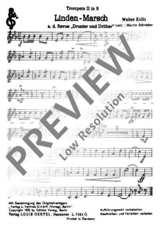"Linden-Marsch - Set of Parts" Sheet Music by Walter Kollo