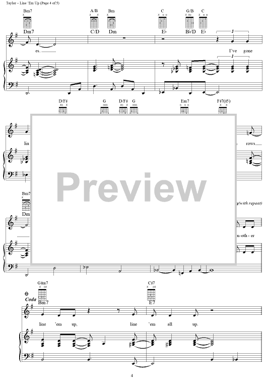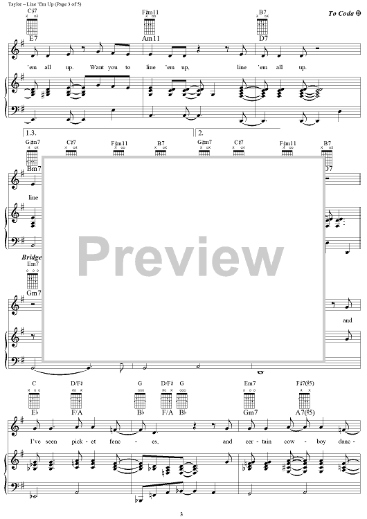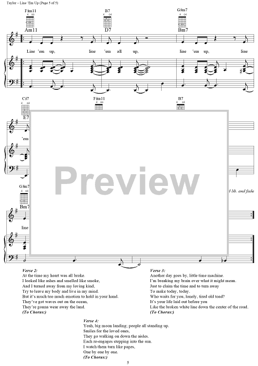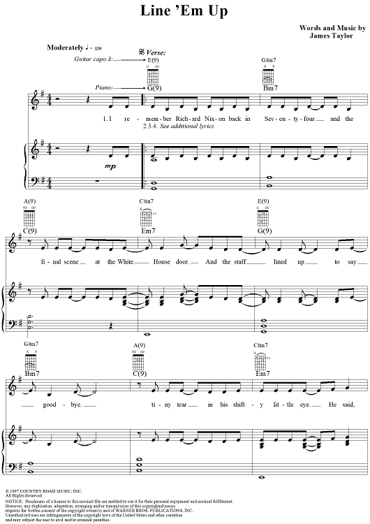 Digital Sheet Music for Line 'Em Up by James Taylor scored for Piano/Vocal/Chords; id:112436