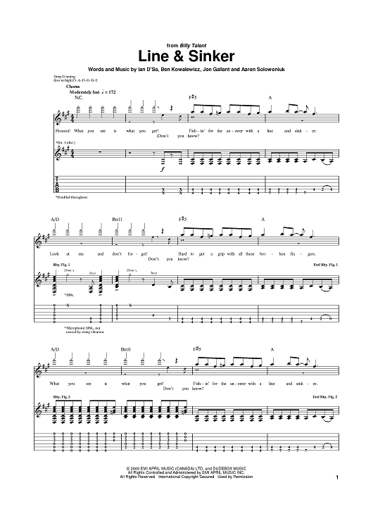 Digital Sheet Music for Line & Sinker by Billy Talent, Ian D'Sa, Jon Gallant, Ben Kowalewicz, Aaron Solowoniuk scored for Guitar Tab; id:389020