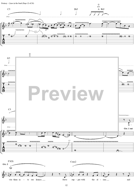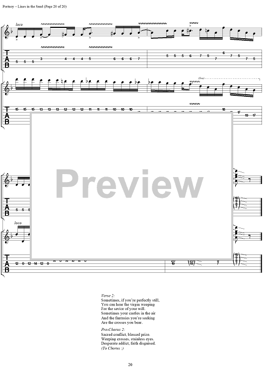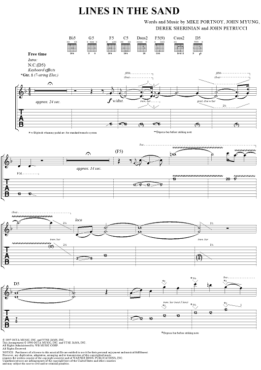 Digital Sheet Music for Lines in the Sand by , John Myung, Michael Portnoy, Derek Sherinian, Dream Theater, John Petrucci scored for Guitar Tab/Vocal; id:119591