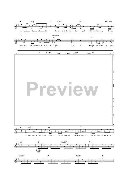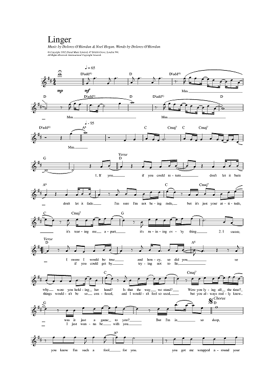 Digital Sheet Music for Linger by The Cranberries, Dolores O'Riordan, Noel Hogan scored for Lead Sheet; id:380733