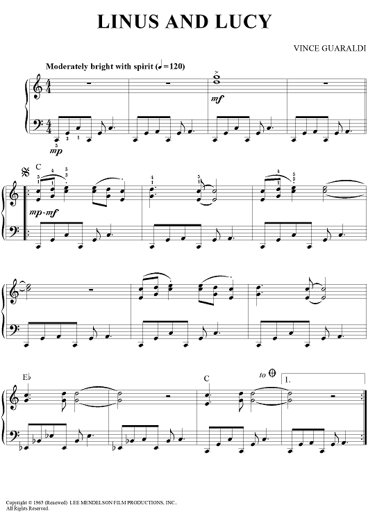 "Linus and Lucy" Sheet Music by Vince Guaraldi