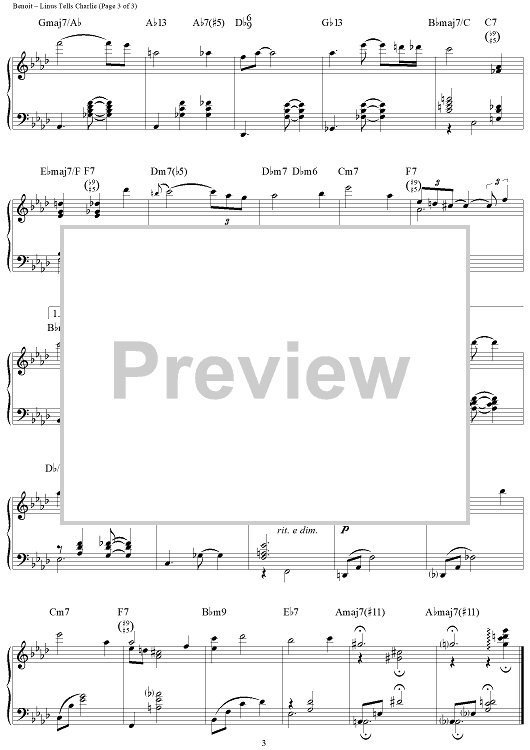 Digital Sheet Music for Linus Tells Charlie by David Benoit scored for Piano Solo; id:287561