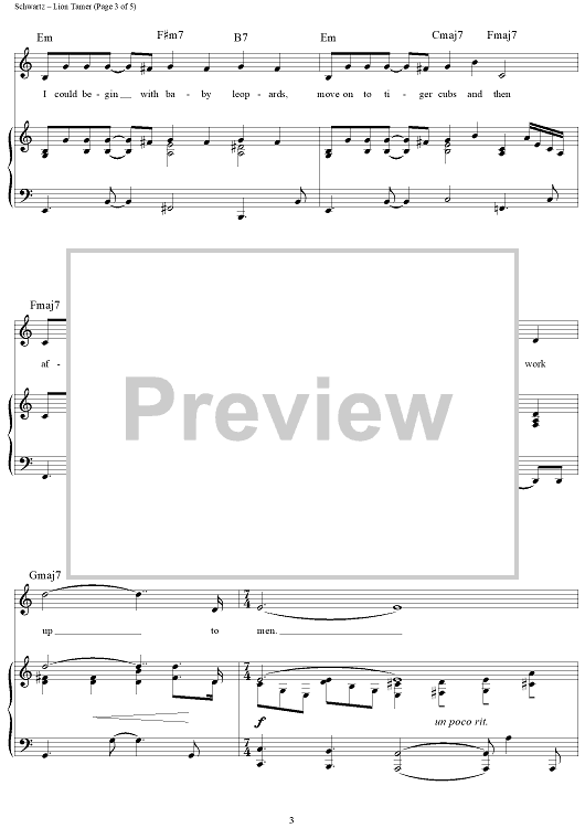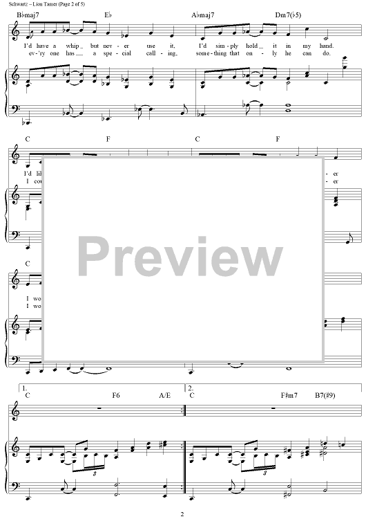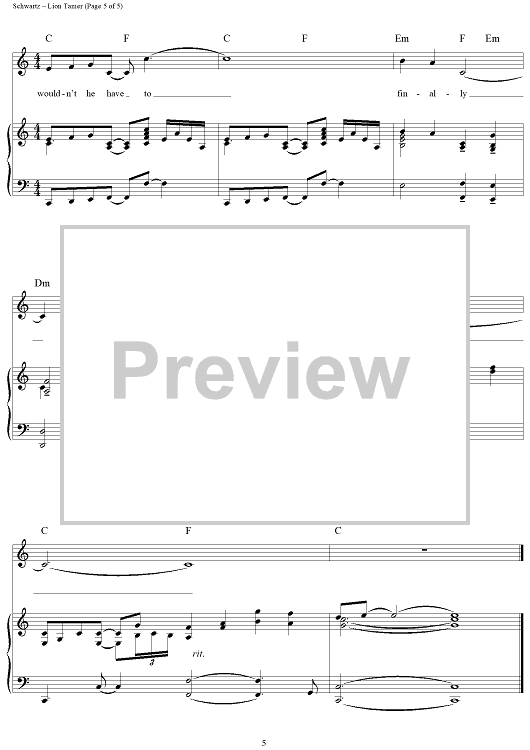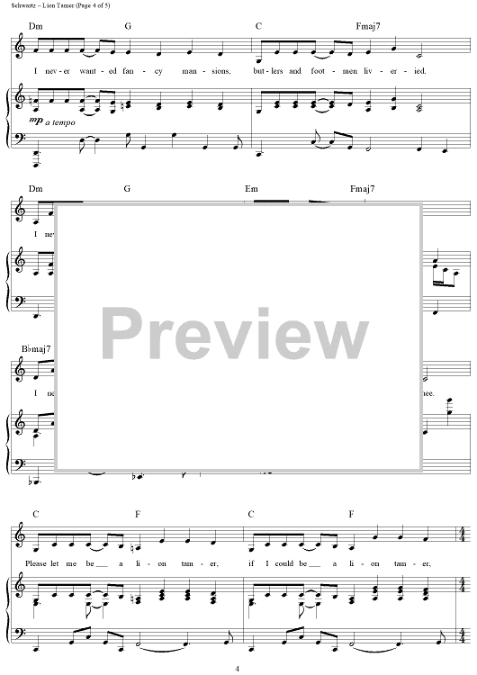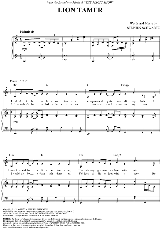 Digital Sheet Music for Lion Tamer by Stephen Schwartz scored for Piano/Vocal/Chords; id:257245