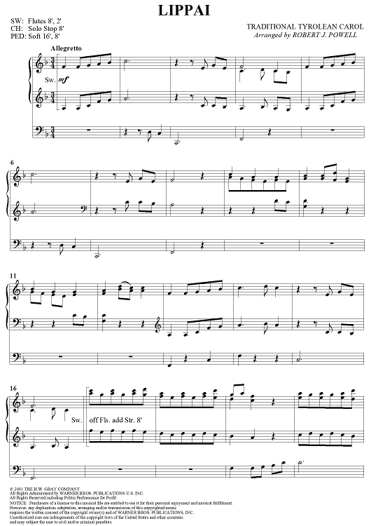 Digital Sheet Music for Lippai by Robert J. Powell, Traditional Tyrolean Carol scored for Organ Solo; id:286804