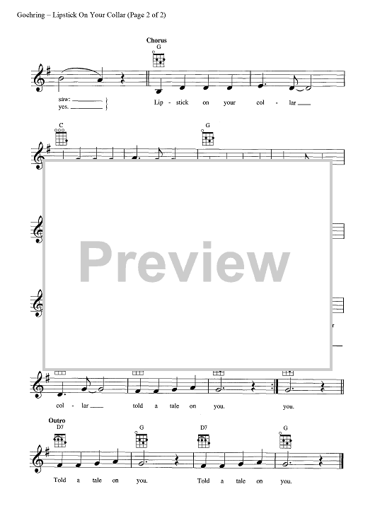 Digital Sheet Music for Lipstick On Your Collar by Connie Francis, Edna Lewis, George Goehring scored for Ukulele/Vocal; id:447203