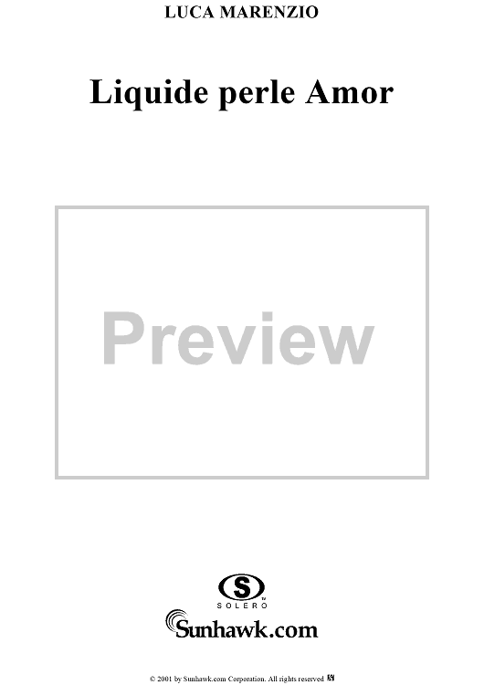 Digital Sheet Music for Liquide perle Amor by Luca Marenzio scored for Four-part Mixed Chorus; id:253291