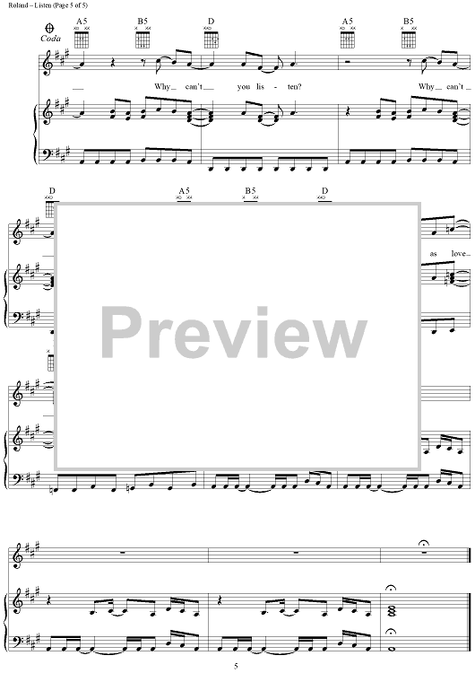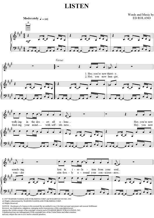 Digital Sheet Music for Listen by Collective Soul, Ed Roland scored for Piano/Vocal/Chords; id:112708
