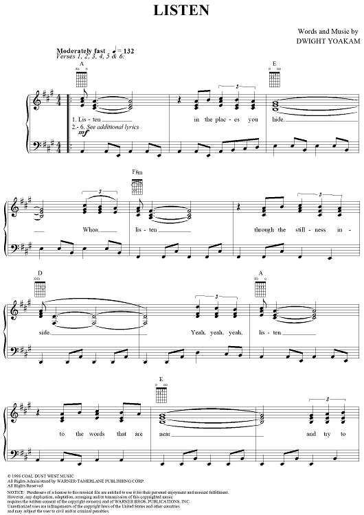 Digital Sheet Music for Listen by Dwight Yoakam scored for Piano/Vocal/Chords; id:139878