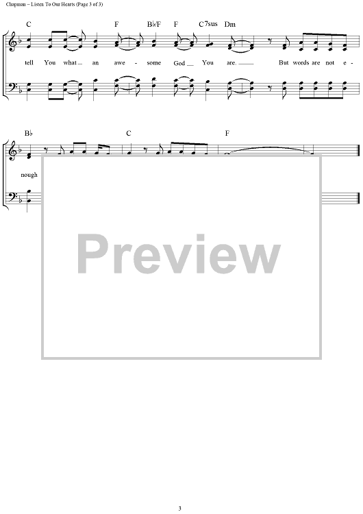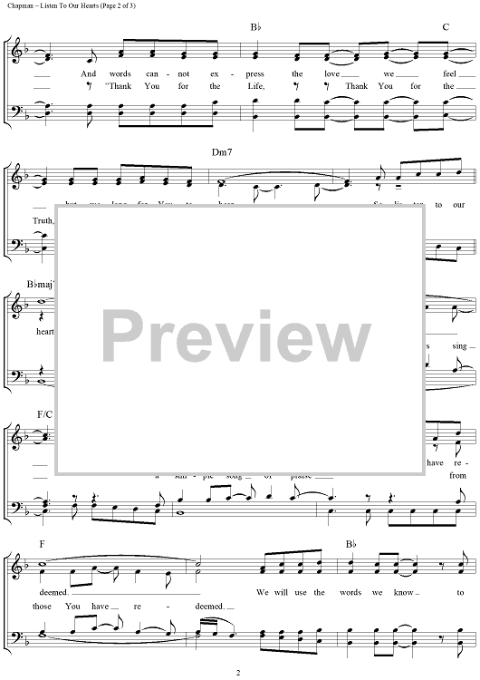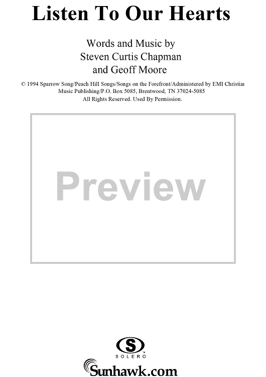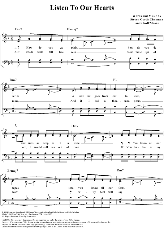 Digital Sheet Music for Listen To Our Hearts by Geoff Moore, Steven Curtis Chapman scored for Piano/Vocal/Chords; id:119040