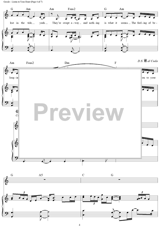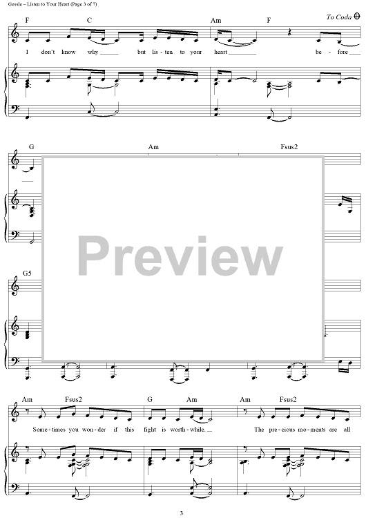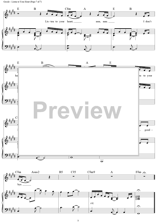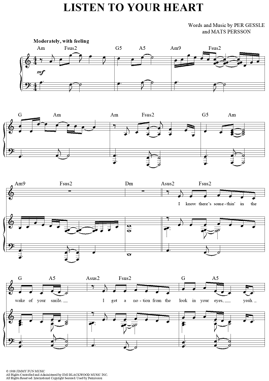 "Listen to Your Heart" Sheet Music by D.H.T.