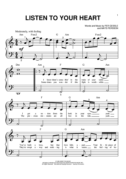 "Listen To Your Heart" Sheet Music by D.H.T.